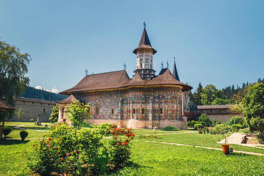 Der heutige Tag ist ganz den Moldauklöstern gewidmet; die ältesten Kirchenbauten der Bucovina (Bukowina/Buchenland) wurden zum Weltkulturerbe erklärt und faszinieren mit ihren farbenfrohen Fresken und bunten Malereien jeden Besucher. Die erste Station ist das Kloster Sucevita mit seinem großen Ensemble aus Wehr- und Sakralbauten. Hier beeindrucken noch heute Wandmalereien in leuchtenden Farben, wie zum Beispiel die “Himmelsleiter des Johannes”. Weiterhin Besichtigung des Klosters Moldovita. Charakteristisch ist die dominante gold-gelbe Farbe der Fresken. Am Nachmittag steht das Kloster Voronet, das auch „Capella Sixtina“ Rumäniens genannt wird, auf dem Programm. Berühmt wurde das Kloster durch seine Grundfarbe, einem aus gemahlenem Lapislazuli angemischten, intensiven Blau. Danach wird noch das Kloster Humor besucht, welches in einem dunklen Rot bemalt ist. Das Kloster fügt sich harmonisch in das Landschaftsbild ein. Die Kirche wurde bis unter das Dach mitbemalt und hat von allen Klosterkirchen mit Außenfresken die ältesten Malereien.